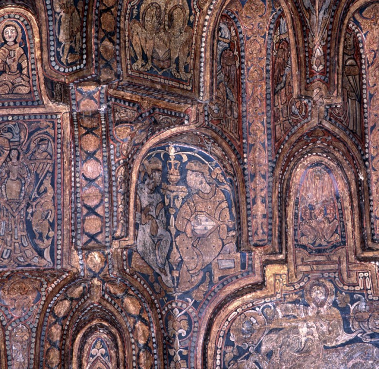 On trouve aussi des décors de fresques remarquables dans des villes, comme à Samarra en Irak. Capitale éphémère des califes abbassides, fondée en 836 et abandonnée en 883, ce site a livré de nombreux fragments de plâtre peint. Les représentations sont hiératiques, symétriques, presque immobiles. L’art de Samarra est probablement l’exemple le plus fidèle de la peinture arabe à ses origines. Trois siècles plus tard, le décor de la Chapelle palatine en est encore assez proche. De l’Irak à l’Italie, les figures restent donc majestueuses.