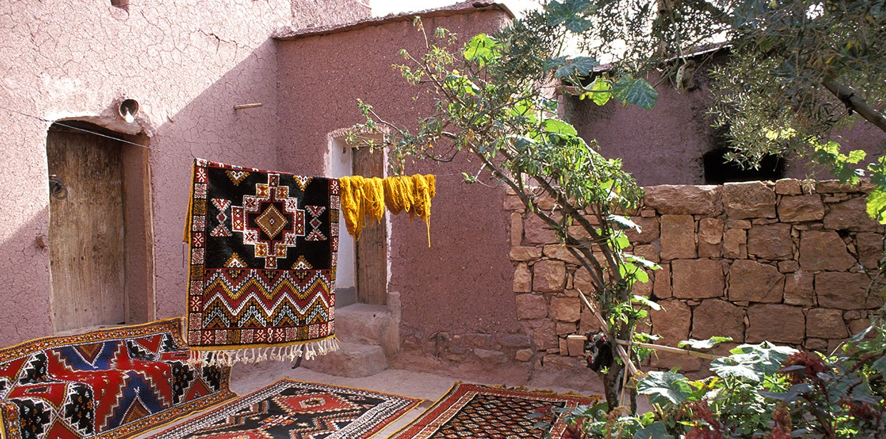 Par ailleurs, en raison de la production particulièrement riche de tapis dans l’Empire ottoman à l’époque moderne, beaucoup d’ateliers du monde arabe se sont réapproprié des formules décoratives créées à Constantinople. Ce phénomène est notamment visible dans certaines villes côtières du Maghreb, comme à Alger. Toutefois, certaines zones isolées restent réfractaires à cette dynamique, par exemple dans le sud du Maroc où les tapis noués, utilisés comme matelas, rideaux, décors ou harnachements, continuent à utiliser des formules décoratives géométriques proprement locales. Ces tapis se distinguent par le fait qu’ils n’ont généralement pas de bordure, mais sont constitués d’une succession de bandes ou de motifs. Certains sont particulièrement appréciés pour repousser les mauvais esprits.