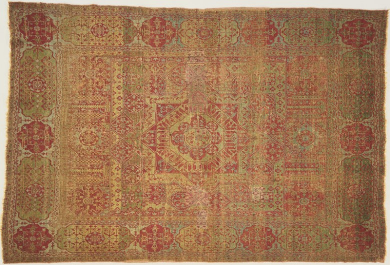 Les tapis constituent un groupe différent, aux techniques variées. Généralement, un tapis est constitué d’une « armure » de fils entrecroisés, sur laquelle sont noués des brins de laine rasés. Ces nœuds peuvent être symétriques (appelés « turcs ») ou asymétriques (appelés « persans »). Dans le monde arabe, la production de tapis égyptiens de la fin du XVe siècle (groupe des « tapis mamelouks ») est bien connue. Ces œuvres se distinguent par leur technique, proprement locale, et par leur gamme de couleurs (vert, ocre, bleu et rouge). Quelques-uns se détachent cependant des réalisations courantes, comme un tapis à décor hébraïque fortement inspiré de productions européennes, probablement tissé pour une synagogue italienne.