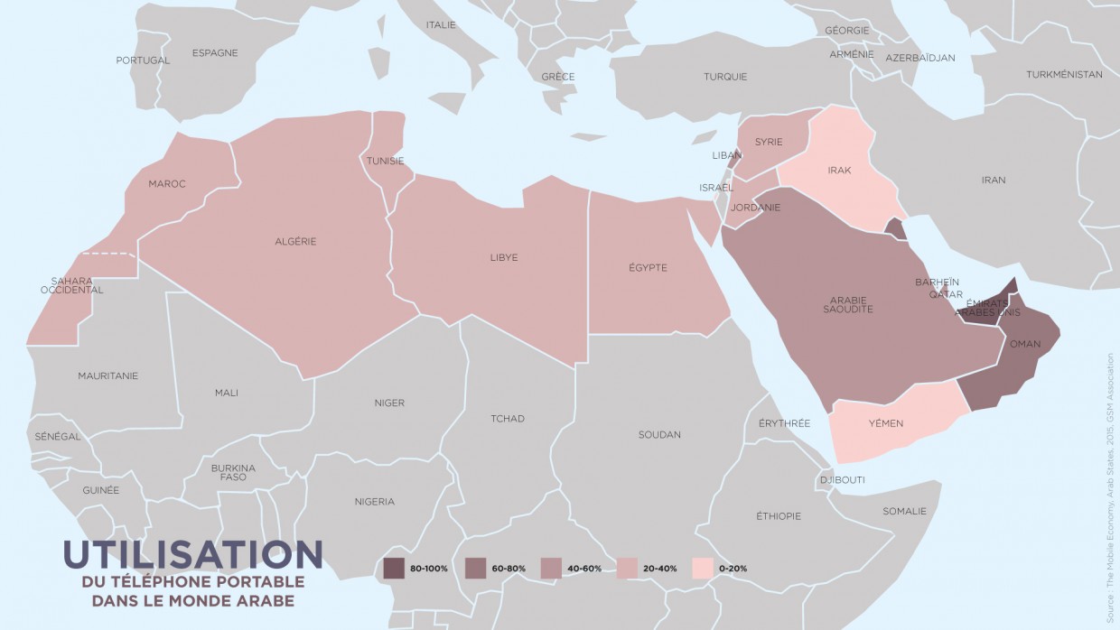 On recense dans le monde arabe près de 200 millions d’utilisateurs de téléphones portables, dont 117 millions de smartphones. Environ un tiers des habitants du monde arabe (33%) possède donc un smartphone, contre 41% dans l’ensemble du monde. Mais ce chiffre cache de réelles disparités, entre les pays qui subissent des conflits et les riches États du Golfe. Ainsi, alors que le Yémen, l’Irak et la Palestine occupent le bas du classement, avec 17% d’utilisateurs, Le Qatar et les Émirats Arabes Unis en comptent 83 % ! Ce domaine, en pleine expansion, représente aussi une réelle opportunité économique pour tous les pays arabes.