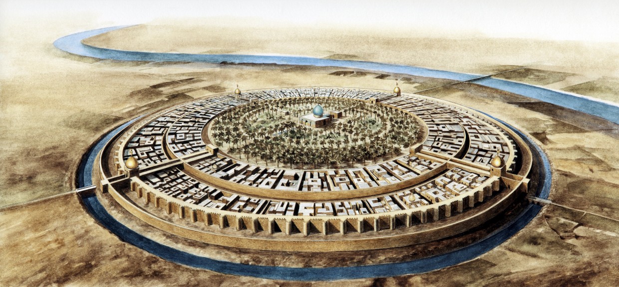 Difficile de nos jours de se faire une idée de la ville du Moyen Âge : les fouilles archéologiques sont impossibles et peu de monuments demeurent. Cependant les textes nous mentionnent une ville ronde, où le calife est séparé – et donc protégé – de ses sujets par une armée de mercenaires. C’est un centre cosmopolite et marchand, marqué par des foires bisannuelles, et où les savoirs et les débats politiques et religieux vivent. C’est là qu’ouvre la première « maison de la sagesse » (bayt al-hikma), où les textes de l’Antiquité grecque sont traduits et où l’idéologie rationaliste est mise en avant par le calife al-Mamoun. Bagdad est aussi une ville d’intrigues et de jeux de pouvoirs, dont se font l’écho les Mille et Une Nuits.