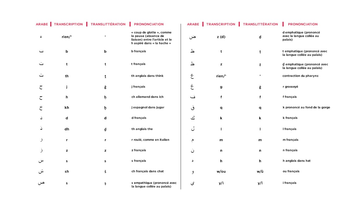 La transcription, au contraire, se base sur la langue d’arrivée et sur son système d’écriture et de prononciation. Cela signifie que la transcription d’un même mot arabe en français et en anglais, par exemple, ne donne pas toujours le même résultat. En revanche, cela permet à quelqu’un qui ne connaît pas l’arabe une lecture immédiate du mot et une prononciation aussi proche que possible de l’original.Ce deuxième système est donc le plus répandu en dehors du milieu scientifique et est adopté dans les textes à grande diffusion, comme par exemple dans les médias. C’est aussi le système qui est utilisé dans ce web-documentaire.