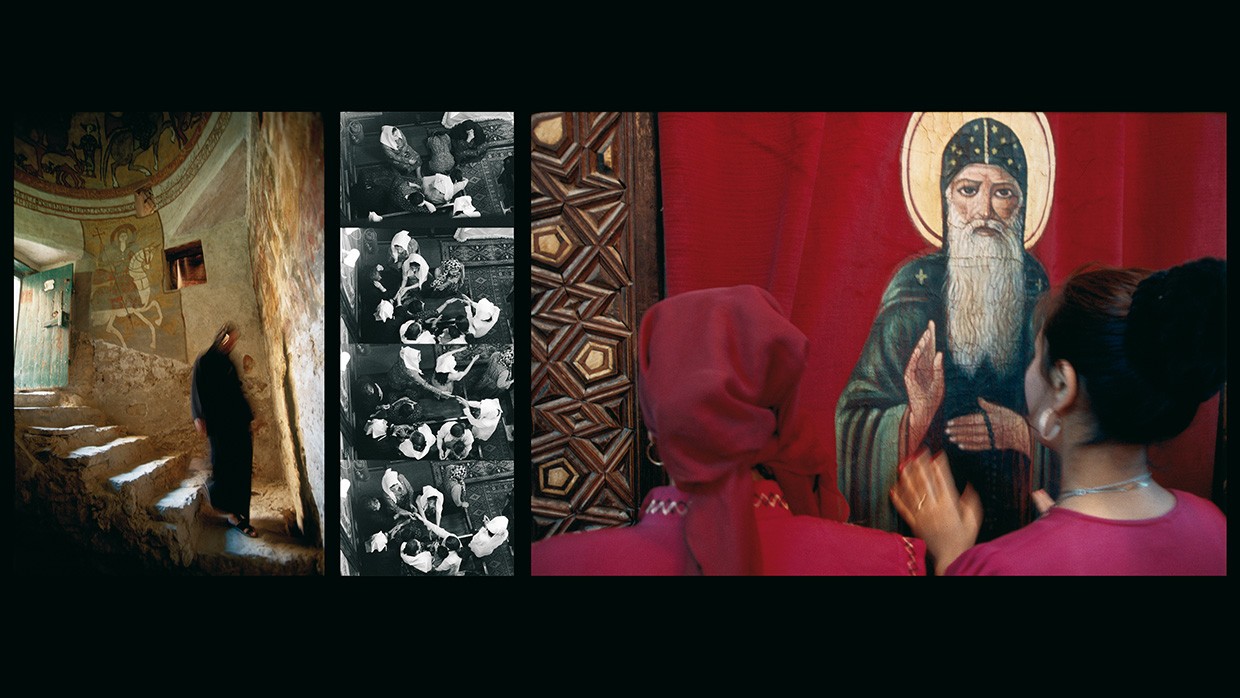 Ici, le titre Salam est visible sous les deux acceptions du mot : la paix et la salutation. A gauche, il y a la paix régnant dans la chapelle du monastère St Paul, au centre, une composition faite d’images du salut pendant la messe vu d’en haut. Enfin, à droite, l’image de deux femmes venant prendre grâce auprès du saint figurant sur le rideau de l’iconostase et répondant à son geste de paix.